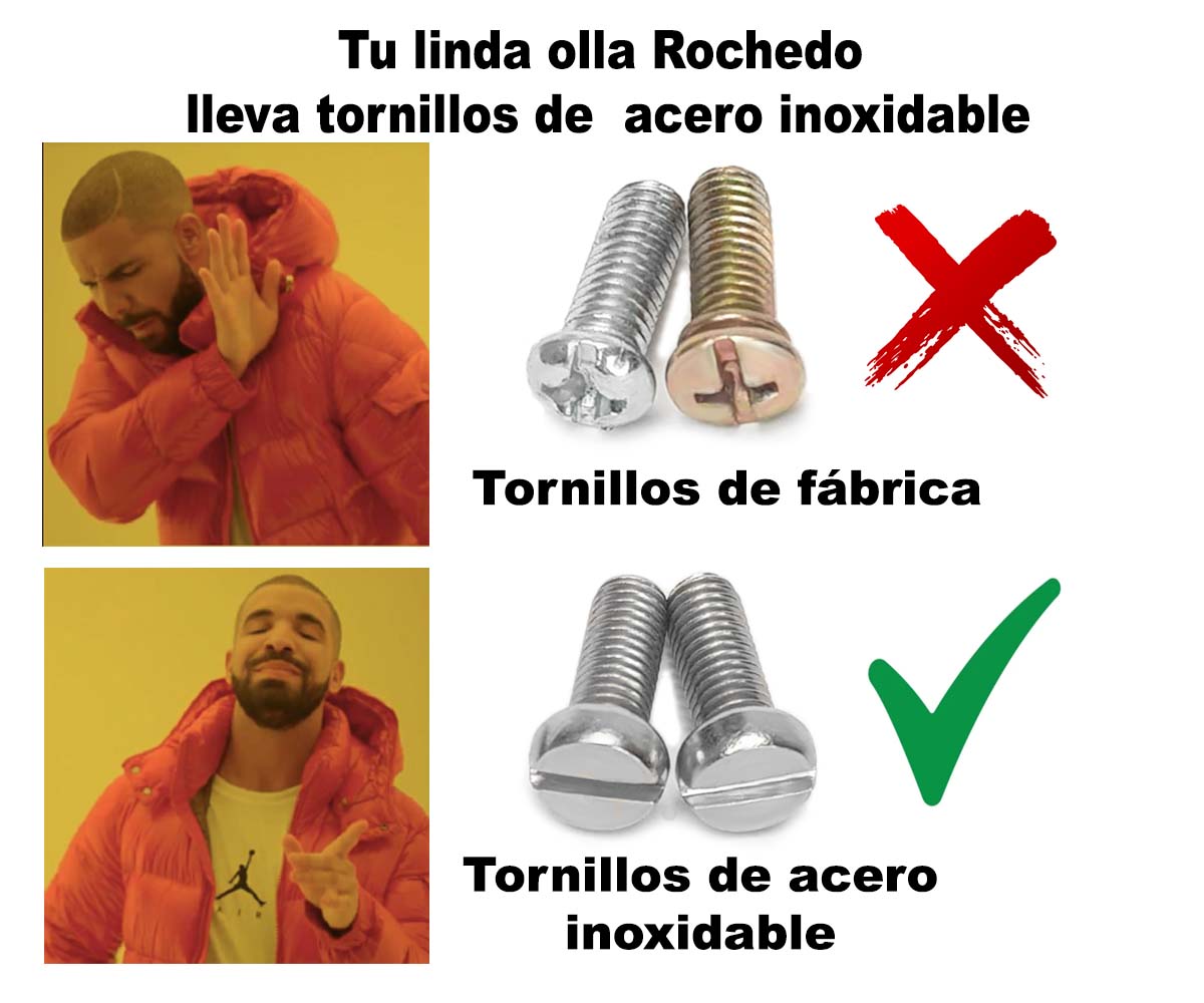 Como valor agregado, recibes tus ollas con tornillos de acero inoxidable, para que siempre mantengan la calidad y tu felicidad. Cambiamos los que vienen de fábrica para mejorar la calidad.