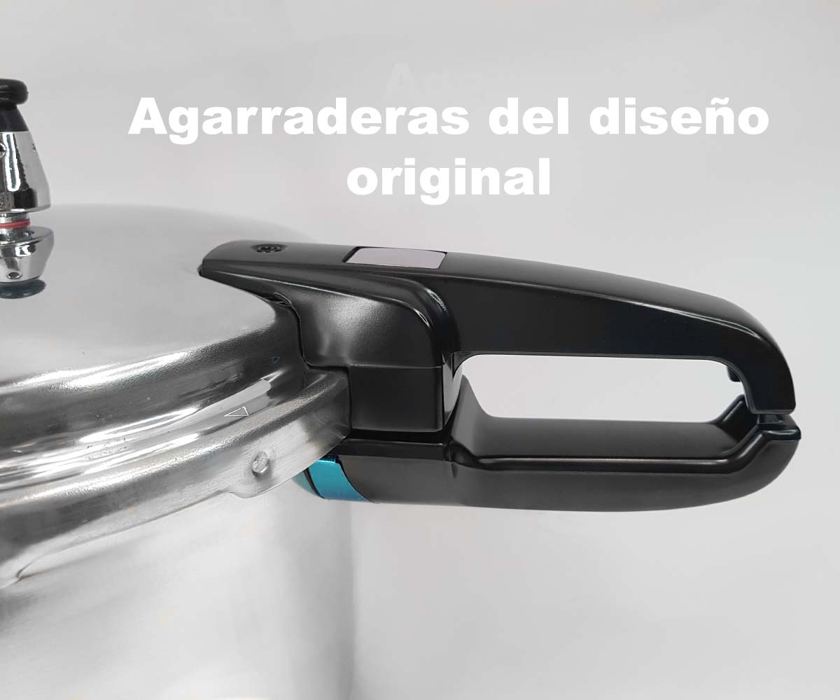 1)Sensor de Presión: Está cerca del mango de la olla, en el momento que la olla empieza a generar vapor o presión en su interior, el sensor sube y nos impide abrir la olla por un descuido. 2) Válvula de Seguridad Principal: Es la válvula que va en el centro, con una chimenea y un peso que lleva en su interior un alambre de seguridad para que al sentir la presión no se caiga. Es la que libera la presión constante y libera el vapor sobrante. 3) Válvula de Alarma: Es una válvula que emite un sonido agudo que nos alerta en el caso que se obstruya la válvula principal no libere vapor y nos indica que debemos retirar la olla de la fuente de calor, con calma. 4) Válvula de Seguridad: Es en el caso que las anteriores fallen, entra en acción la válvula de seguridad, libera la sobrepresión y si empieza a funcionar, debemos retirar la olla, con calma. 5) Ventana de Seguridad: Actúa en el caso que todas la anteriores fallen, el empaque se asoma por la ventana para liberar el exceso de presión.